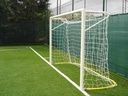 Par čeličnih golova za mali nogomet 3x2 m, stoje u podnožju, sa zavarenim gornjim nosačima mreže i lancem za donji oslonac mreže.